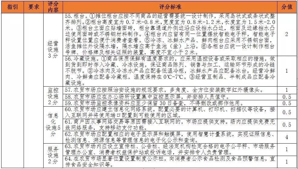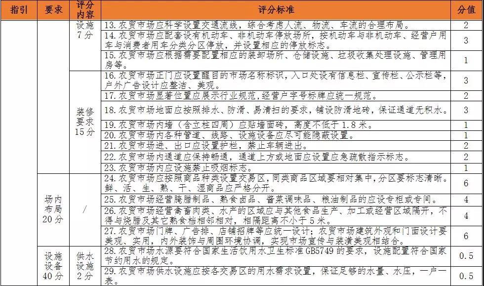你想知道自家附近的農(nóng)貿市場達標情況嗎?對照上面評審標準看看吧!