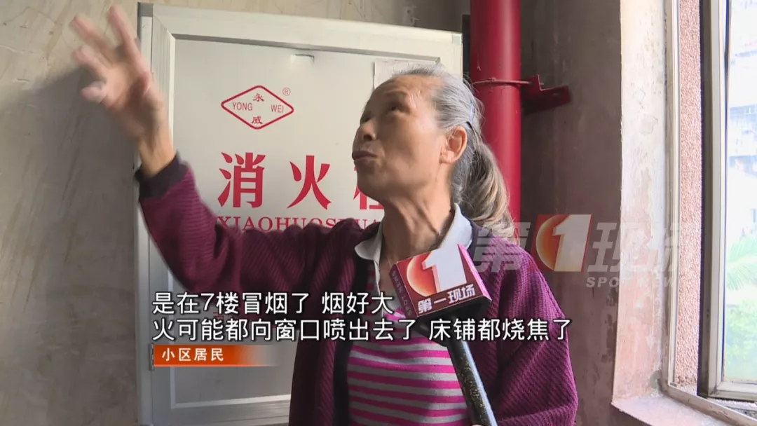記者到達(dá)現(xiàn)場時,火勢已被消防救援人員撲滅,樓里的居民正在清理救火時留下的水跡。據(jù)居民介紹,著火的房子位于7樓,是一間出租屋,里面還住了不少人。