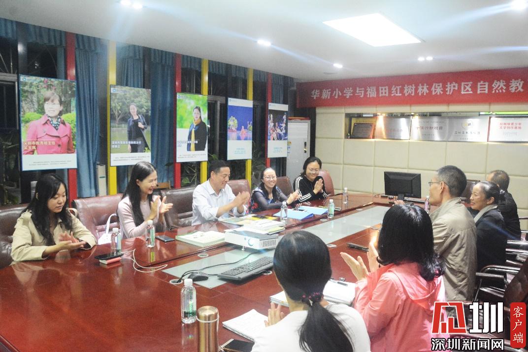 見圳客戶端·深圳新聞網2019年11月22日訊 (見圳客戶端、深圳新聞網記者 曹園芳 通訊員 鄧麗云)11月21日,華新小學與福田紅樹林保護區(qū)自然教育合作簽約儀式在華新小學二樓會議室舉行。與會的有華新小學張偉校長、教導處潘春林主任、課程部鄧麗云主任、美術科組長胡美莉老師、深圳市觀鳥協(xié)會會員陳苗老師,福田紅樹林保護區(qū)管理局王孟琪副局長、保護區(qū)管理局宣教組兩位負責人胡柳柳與楊瓊、保護區(qū)管理局兩位宣教員石俊慧與陳佳熒。鄧麗云主任和楊瓊博士分別介紹了雙方的課程特色與實踐方案。