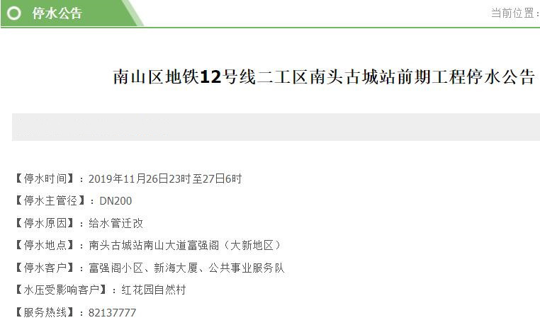 提前做好準備!26-29日南山、福田這些小區(qū)將停水