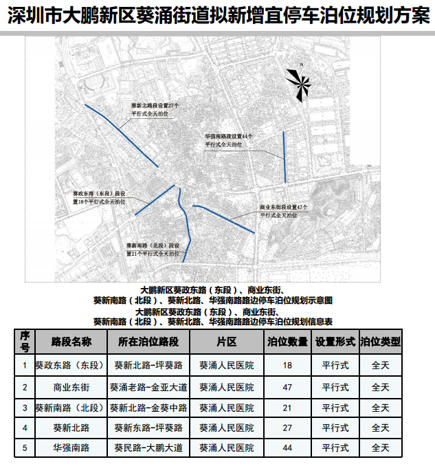其中,在寶安區(qū)3條道路新增316個(gè)宜停車(chē)泊位、龍崗區(qū)23條道路新增890個(gè)宜停車(chē)泊位、龍華區(qū)14條道路新增702個(gè)宜停車(chē)泊位、光明區(qū)9條道路新增305個(gè)宜停車(chē)泊位、大鵬新區(qū)5條道路新增157個(gè)宜停車(chē)泊位。具體規(guī)劃方案如下: