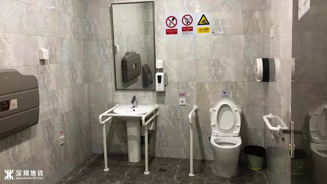 ▼深圳地鐵地鐵站設(shè)置了殘疾人洗手間,如果你遇到殘疾人士需要使用洗手間,可協(xié)助咨詢車站工作人員。