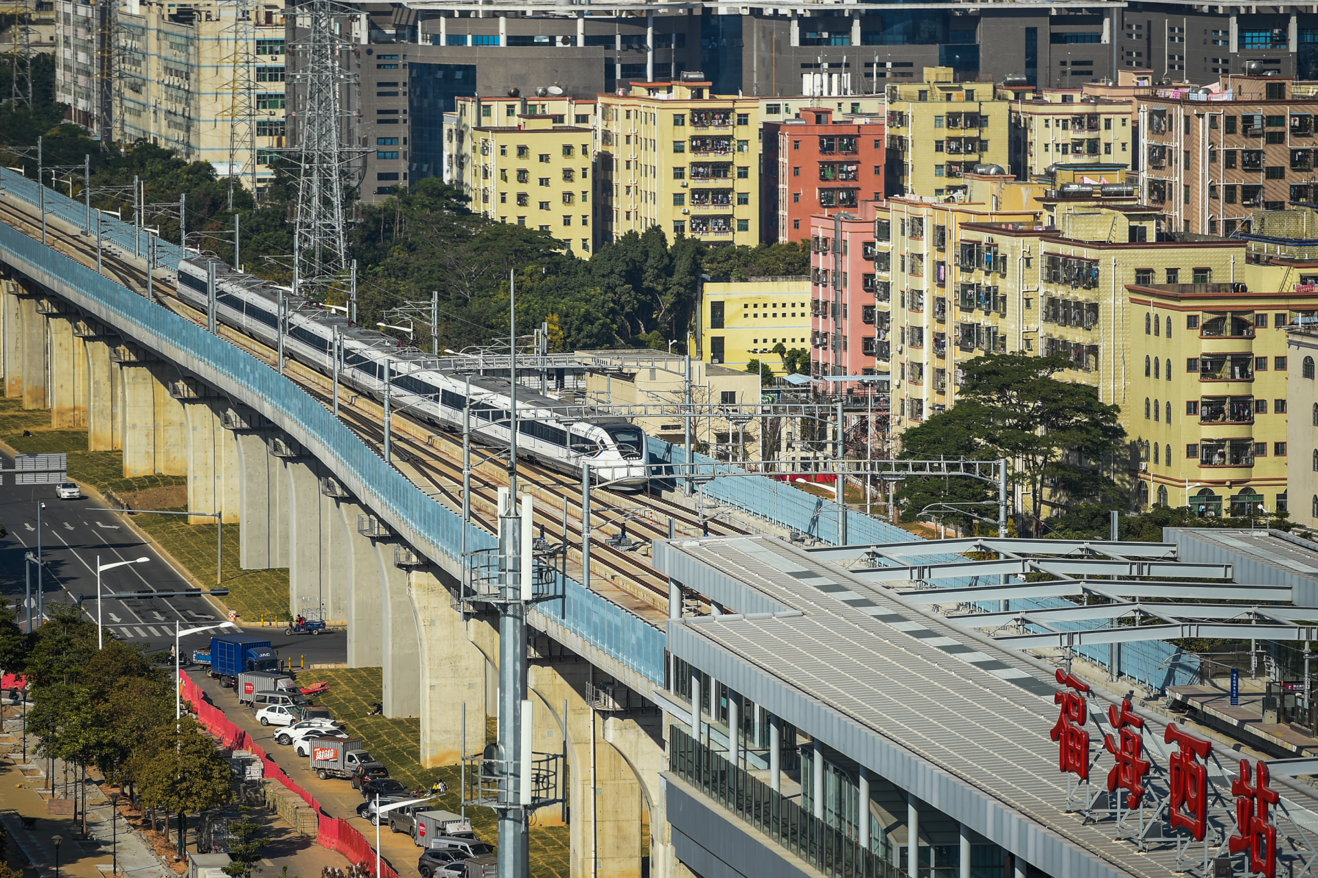深圳特區(qū)報2019年12月9日訊 近日,穗莞深城際鐵路展開動車組試運行工作。12月8日,記者在福海西站捕捉到試運行動車組的身影。據(jù)了解,穗莞深城際鐵路起點為廣州新塘站,終點為深圳機場站,全長約76公里。深圳境內(nèi)設(shè)4個車站,共計15個車站(高架站10座,地下站5座)及區(qū)間2個隧道。待相關(guān)準(zhǔn)備測試工作結(jié)束后,線路將投入載客運營。(記者 劉羽潔)