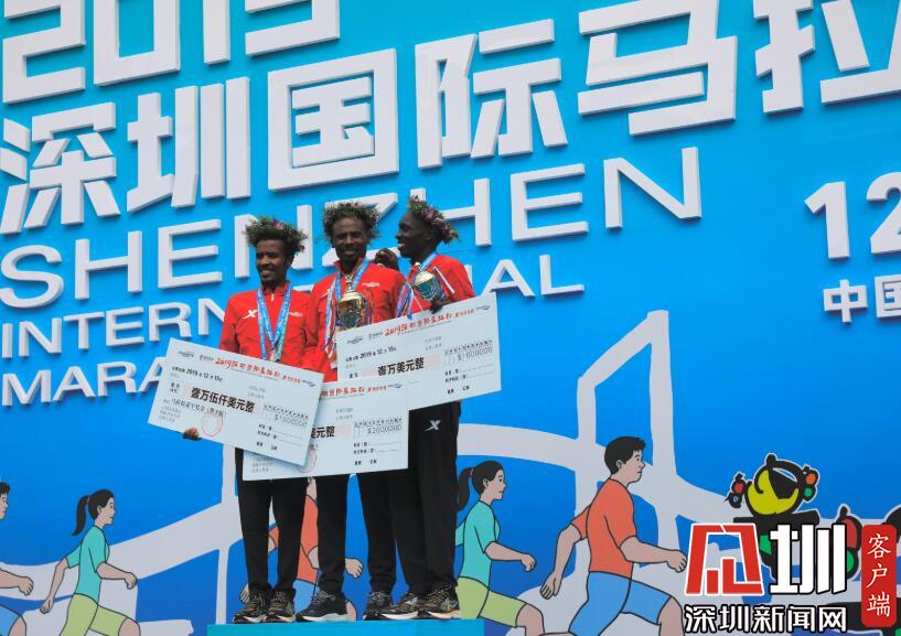 全程男子冠軍Tadese Tola Woldegeberel和第二名獲獎?wù)邠肀А?/p>