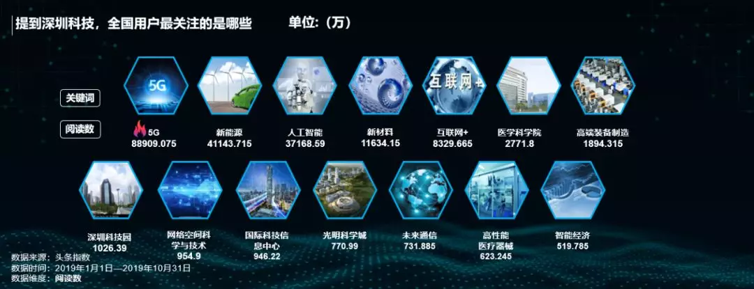 2019年是我國5G商用元年,深圳更是被列入首批5G城市名單,加之因華為的存在,深圳在5G研發(fā)及應用上領先全球,備受關注。5G同時還是提到深圳科技時,最受全國網友最關注的關鍵詞。