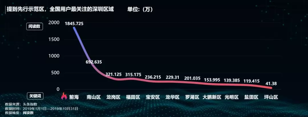 《中共中央、國務院關于支持深圳建設中國特色社會主義先行示范區(qū)的意見》(以下簡稱《意見》)出臺是在8月,短短3個月不到,“先行示范區(qū)”關注度就破億,沖進前三,足見其關注度之高。