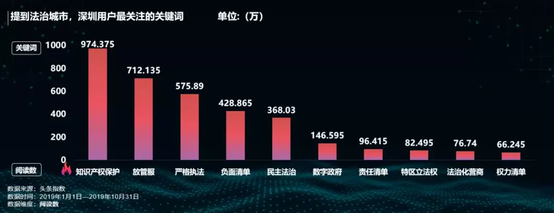 深圳的法治建設領跑全國,今年國家支持深圳率先營造彰顯公平正義的民主法治環(huán)境,打造法治城市示范,進一步引起全市人民關注。尤其是在知識產權的保護方面,被稱為“最嚴知識產權保護條例”的《深圳經濟特區(qū)知識產權保護條例》的正式實施,以及國家對深圳探索知識產權證券化的支持,讓“知識產權保護”一詞成為年度熱詞。今年深圳進一步優(yōu)化政府管理和服務,嚴格執(zhí)法,打造法治化營商環(huán)境,“放管服“、“負面清單”等政策引起網友關注。