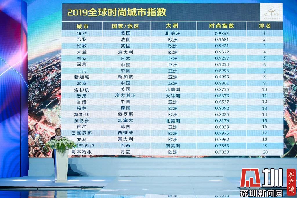 2019全球時尚城市指數(shù)公布,深圳位居第六。