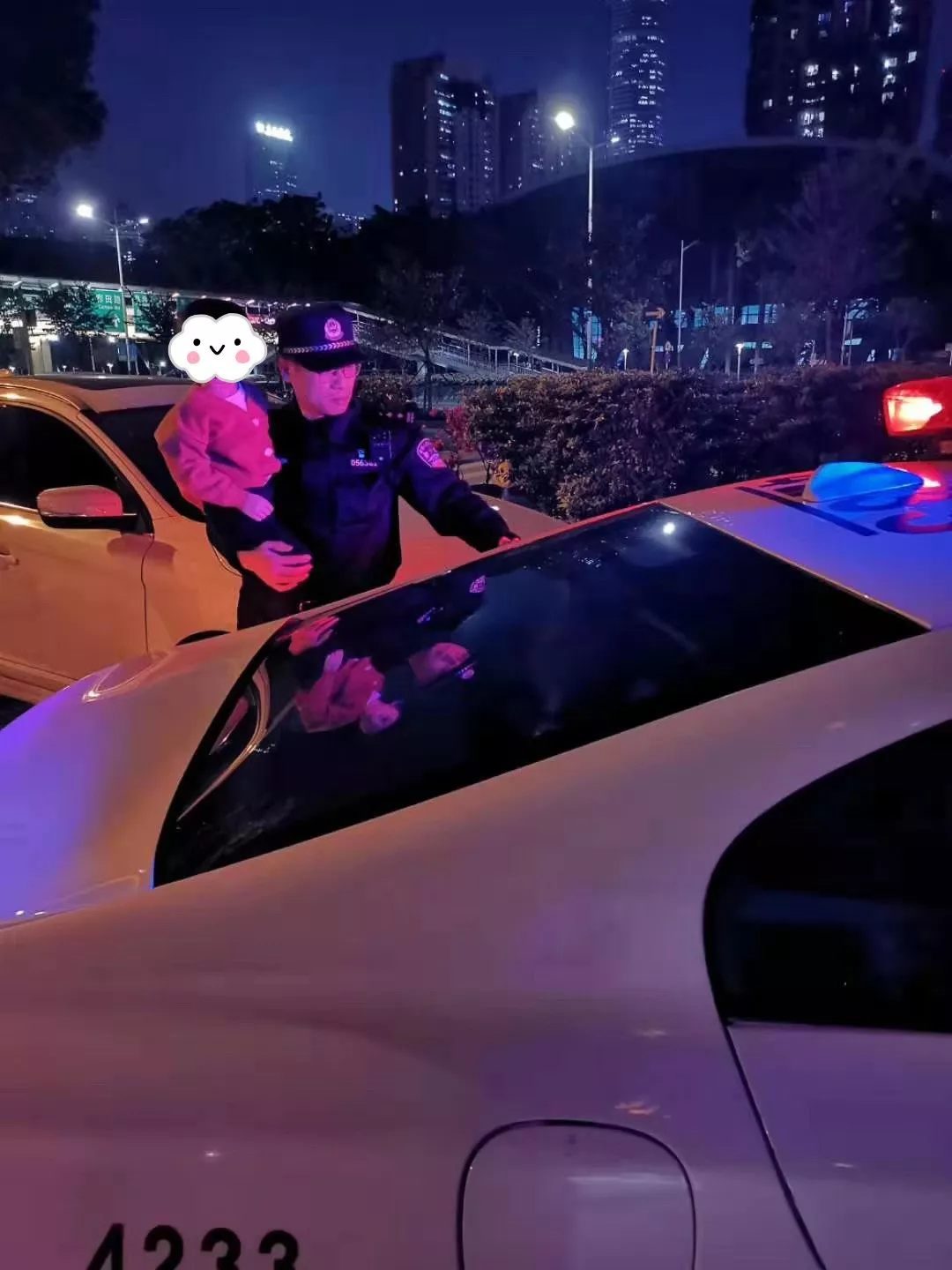 看到男孩哭泣不止,民警黃羽翹卸下平時工作中一臉嚴肅的表情,親切地笑著安撫男孩的情緒,并告訴男孩:“不要害怕,警察叔叔一定會幫你找到爸爸媽媽”。