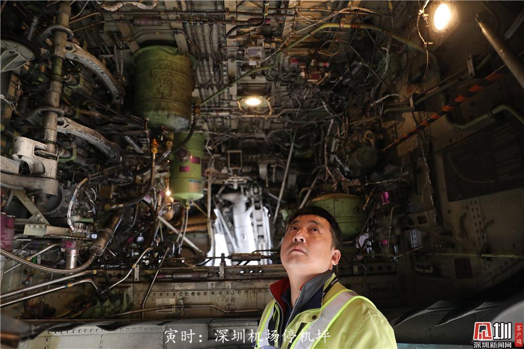 早上4點50分,深圳航空工程師張亮對客機起落架艙進行例行檢查。春運期間的張亮最忙一天要完成12—13架次的飛機檢修,一架飛機的檢修時間需要40—60分鐘,年夜飯往往是和同事們一起吃的。