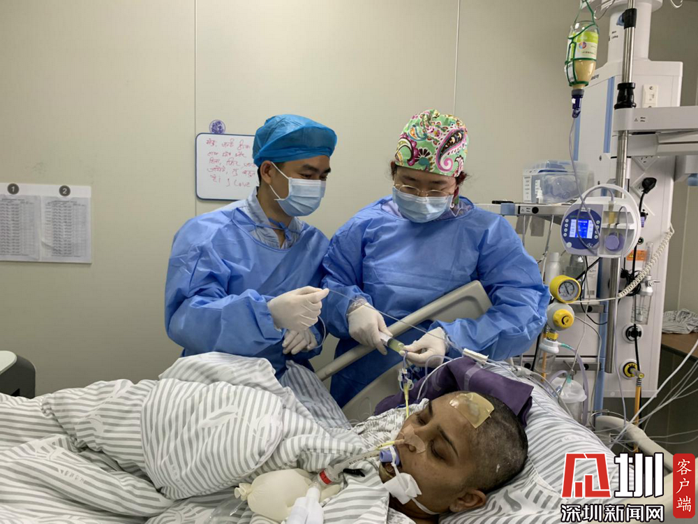 護(hù)士秦寶邦和韓天琦正在給印度籍女教師喂藥和水。此前,她因化膿性鏈球菌感染引發(fā)了重癥肺炎,被轉(zhuǎn)送入醫(yī)院。在ICU的全力救治下,她的病情已經(jīng)有了很大的好轉(zhuǎn)。