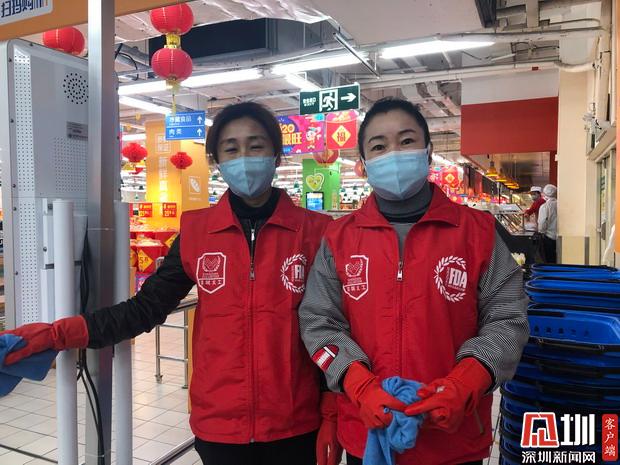 42歲的于文平和45歲的于文華是一對(duì)姐妹,兩人同時(shí)也是深圳市食藥志愿總隊(duì)的志愿者,這次聽到商超需要志愿者幫忙的消息后,她們便迅速的在志愿者群里報(bào)了名,來到超市幫忙。