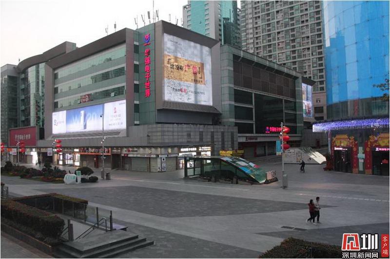 往日里人群熙熙攘攘的華強(qiáng)北電子市場(chǎng)一片冷清