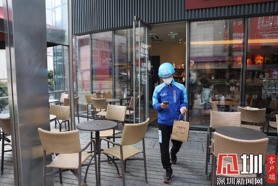 在咖啡店等待商家制作完成,取貨后,王彭輝便馬不停蹄地騎著電動車前往訂單上的地址。平日繁華的南山商區(qū),現(xiàn)在空空蕩蕩的,除了偶爾有車輛開過,路上幾乎都是外賣小哥、快遞小哥的身影,“現(xiàn)在就是大家都待在家里,路上人和車少了,我們也能更快地把訂單送達(dá)?!蓖跖磔x說:“我以前是在梅林那邊工作,剛開始來南山這邊送外賣的時候,對這里的路不熟悉,覺得每個路口都長得一樣,抬頭都是大廈,低頭都是人,但是做得久了以后,慢慢的就熟悉了?!?/p>
