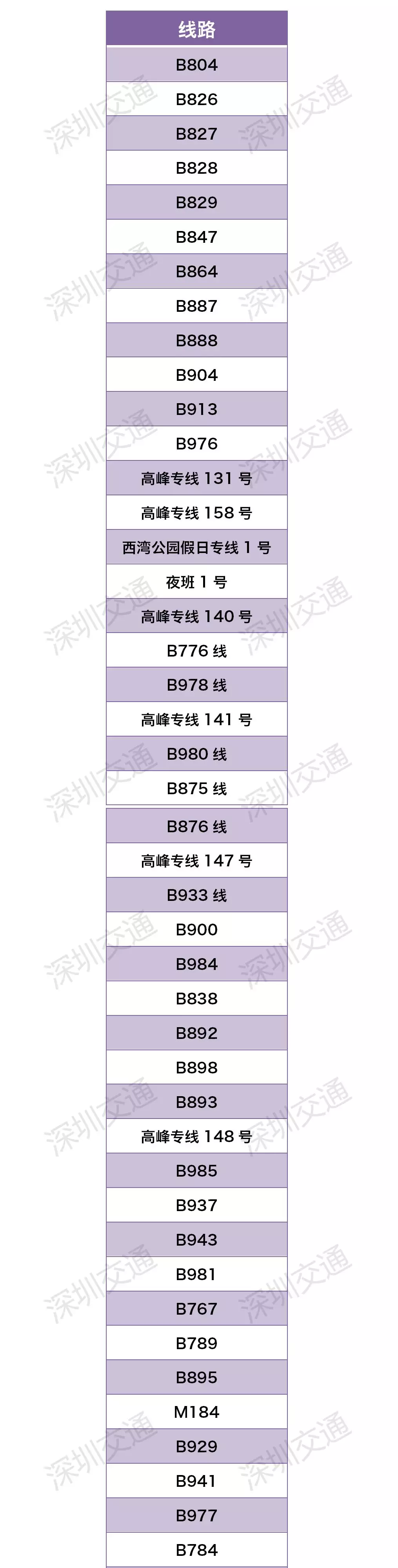 二、部分支線巴士、高峰線、夜班線、跨市運行的公交線路暫停運營。