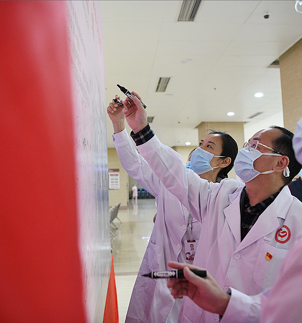 在整個疫情阻擊戰(zhàn)中,龍崗區(qū)婦幼保健院黨組織自始至終都發(fā)揮著不可替代的先鋒模范作用,在疫情剛開始的時候,以曹樂勝院長為首的醫(yī)院黨委就身先士卒緊急行動起來迅速投入到抗病毒戰(zhàn)斗中去。院黨委發(fā)出了通知,號召廣大員工積極行動起來,投身疫情防控第一線,全院人員迅速響應,截止2月3日,報名人數(shù)達369人,其中黨員112人。醫(yī)院組織了部分代表參加的宣誓儀式,大家激情滿懷地舉起右手,莊嚴承諾:我將堅守初心,勇?lián)姑?;無條件服從大局,時刻準備著聽候組織調令;立志沖鋒在前,誓到防疫第一線;我必履職盡責,嚴守規(guī)范,防護到位,確保零感染;保證與病毒戰(zhàn)斗到底,不打贏這場硬仗絕不收兵。