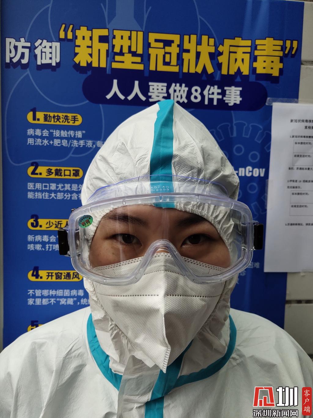 剛穿上防護服,護目鏡是這樣。