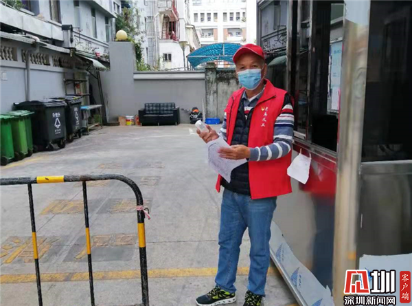 除自發(fā)捐款贈物外,退役軍人們還積極發(fā)揮街道退役軍人義工隊的力量。由于疫情防控原因,需要避免人員聚集,減少外出,老兵們想為疫情防控作貢獻卻找不到好的方法?!安煌獬霾痪蹠?,我們做好防護,就待在自己住的小區(qū)里做貢獻?!笨紤]到近期返深人員逐漸增多,居民小區(qū)防疫工作任務越來越重,作為街道老兵義工隊的隊長,林貞輝在群里向老兵們發(fā)起這樣的倡議,“大家看到這個提議都很支持,想要參加,這樣既能為防疫作貢獻,又減少傳染的風險,戰(zhàn)友們都很高興。”