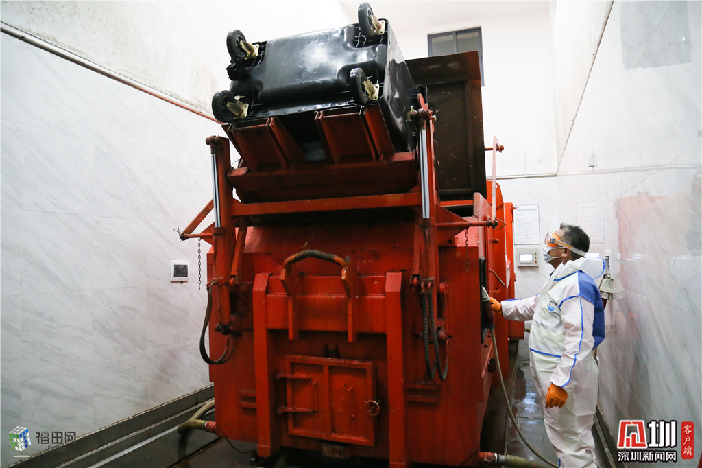 現(xiàn)代化城市生活固然便捷,但是也制造巨量的生活垃圾。垃圾清運人員凌晨3點半起床后開始準(zhǔn)備一天的工作。這段時間,轉(zhuǎn)運站配置1:250的高濃度消毒液,一桶消毒液夠用一個垃圾轉(zhuǎn)運站。記者看到,電動垃圾轉(zhuǎn)運車上的四個環(huán)衛(wèi)消殺工作人員穿著厚厚的白藍(lán)色隔離服,全副武裝迎接來自轄區(qū)源源不斷運過來的垃圾桶,隨著垃圾轉(zhuǎn)運車后滋滋作響的電流聲,車后的平板放下來了,一桶桶垃圾平穩(wěn)有序的拽拉進垃圾轉(zhuǎn)運站進行壓縮,因工作服的關(guān)系,工作人員眼罩上經(jīng)常被一層厚厚的水霧糊上,工作期間會把手套摘除后,從手心處甩出一把把汗。