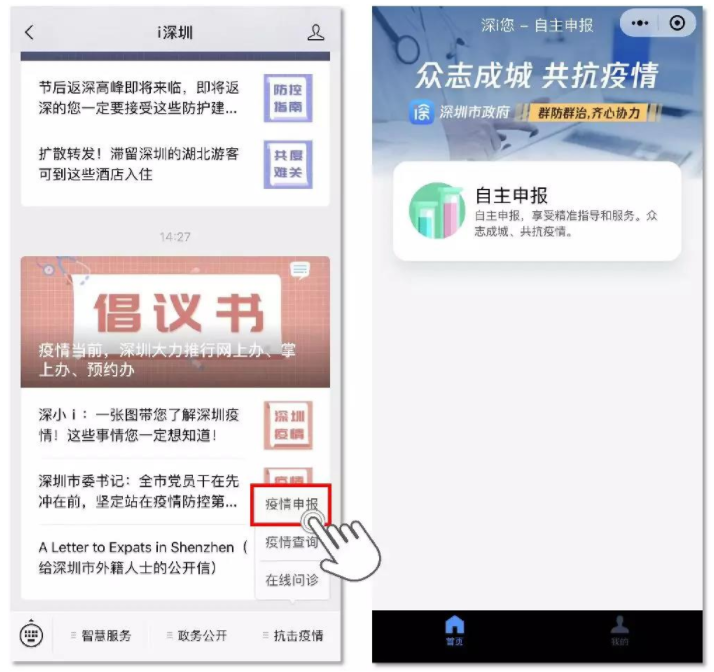 3、“i深圳”APP:通過“i深圳”APP疫情防控服務(wù)專區(qū)入口,進(jìn)入申報平臺。