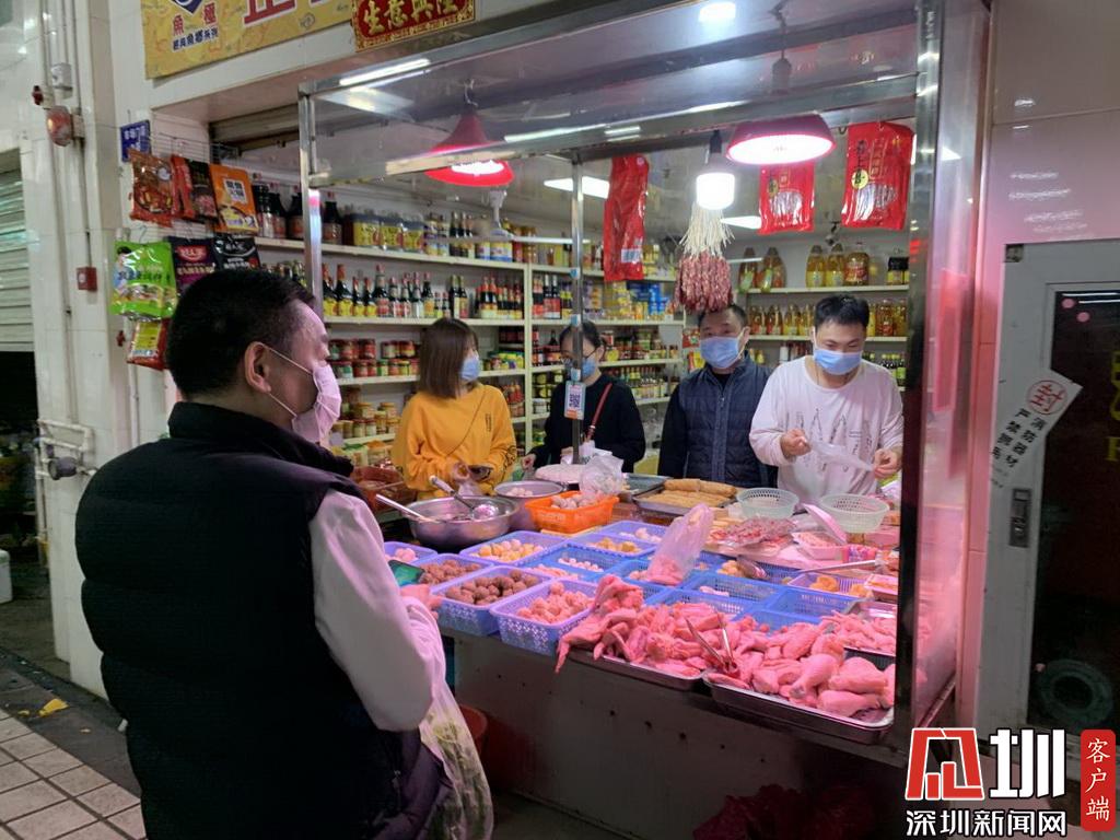 福田區(qū)新洲市場(chǎng),市民戴著口罩出街買菜。