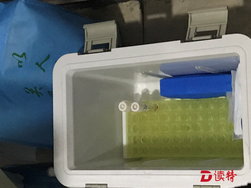據(jù)了解,為了增加采樣的準確性,每個醫(yī)學(xué)觀察居民均采用咽部和鼻腔分別取樣。醫(yī)護人員先用一個咽拭子在孫女士的咽喉內(nèi)部輕輕擦拭,另一個鼻拭子在鼻道內(nèi)鼻腭處轉(zhuǎn)動,然后將拭子放入貼有標簽的樣本管內(nèi)。完成操作后,三位工作人員更換手套,為孫女士的愛人和孩子完成了采樣,采集的樣品被放入了工作人員隨身攜帶的“送檢專用箱”中。