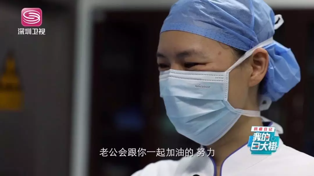 袁曉珊和黃茗勇相處的時間不到十分鐘。離開前,黃茗勇對袁曉珊說,“你們也是日夜奮戰(zhàn)在疫情的最前線當中,你們也很危險,希望你能自己保重自己的身體,老公會跟你一起加的,努力!”聽到這番話,袁曉珊點點頭,眼睛眨了眨,透過口罩輕聲說了句“嗯”。