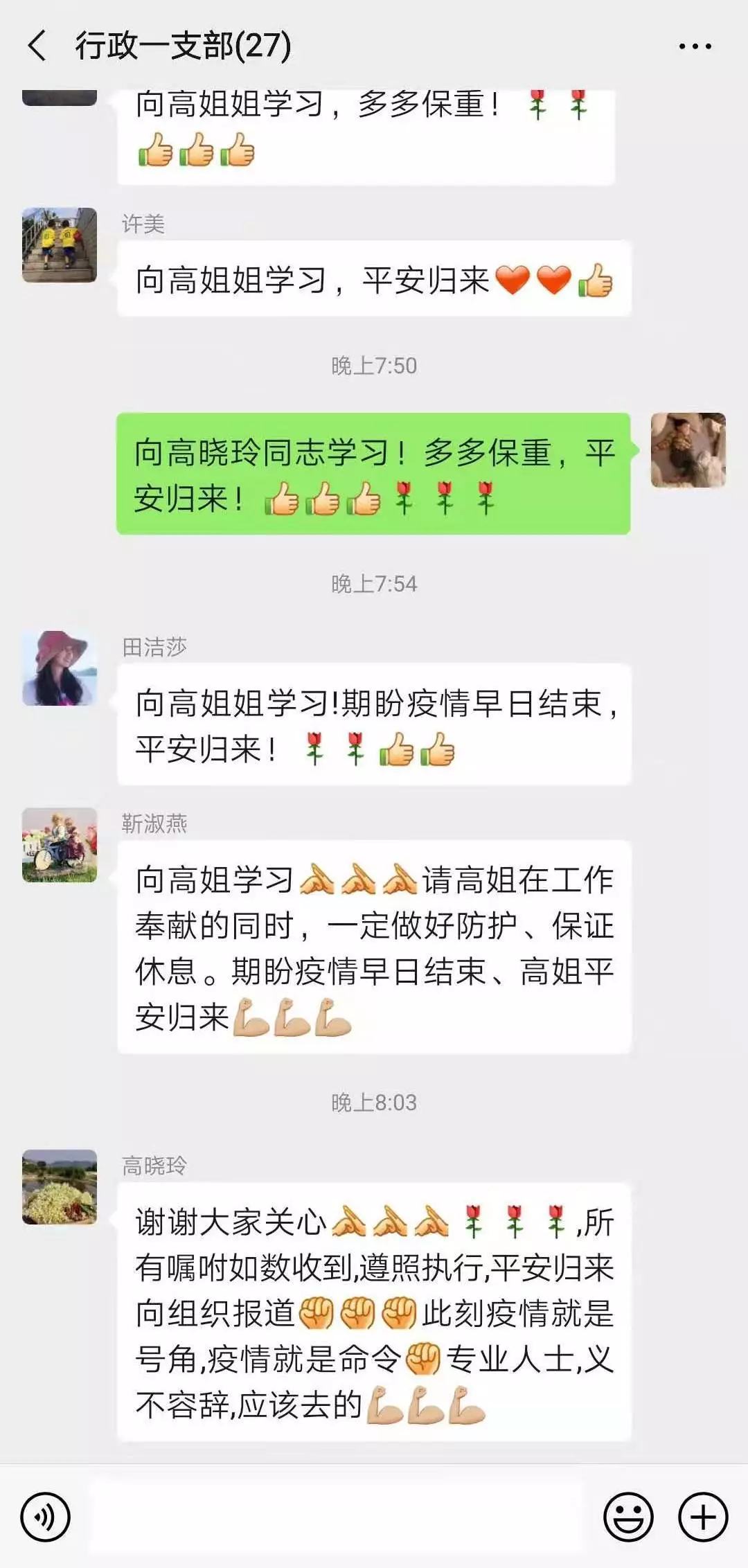 晚上,在黨支部的微信群里,作為支部委員的高曉玲向組織堅(jiān)定承諾:“此刻疫情就是號(hào)角,疫情就是命令,專業(yè)人士,義不容辭,應(yīng)該去的!”