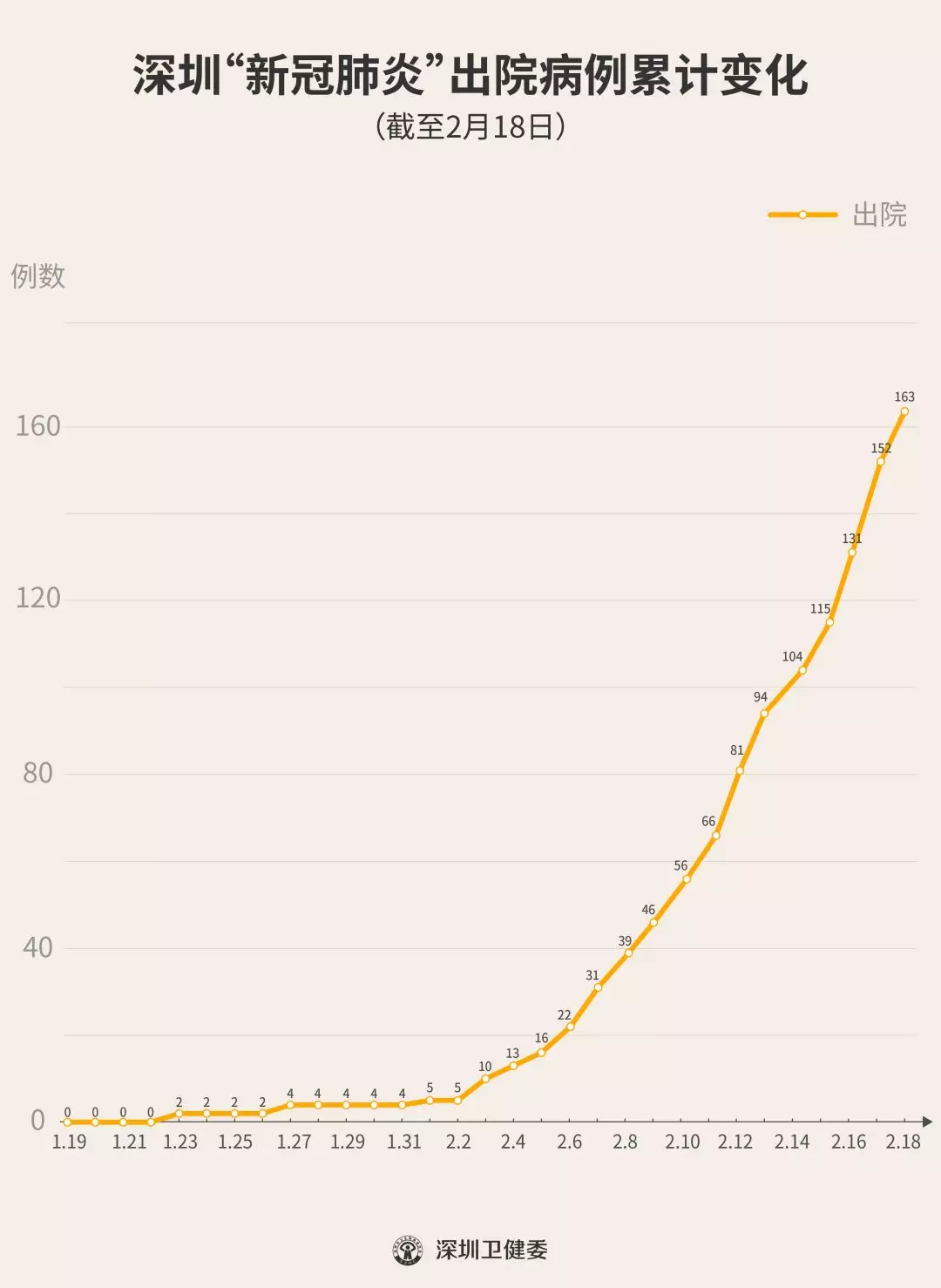 2月18日下午,經(jīng)專家組會(huì)診,深圳再有11名新型冠狀病毒肺炎確診患者出院,累計(jì)達(dá)163人,連續(xù)16天有人出院。