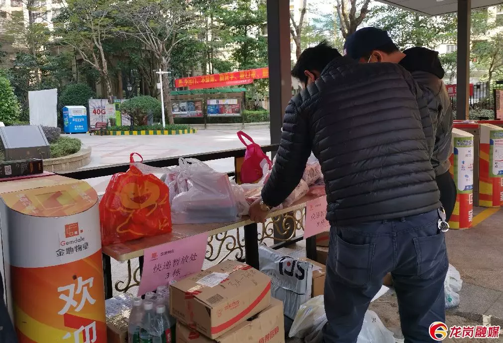 小區(qū)門(mén)口設(shè)置了無(wú)接觸快遞接收點(diǎn)。