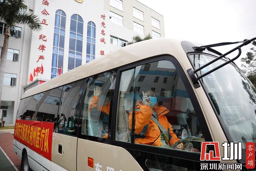 醫(yī)療隊全體乘車離開深圳。