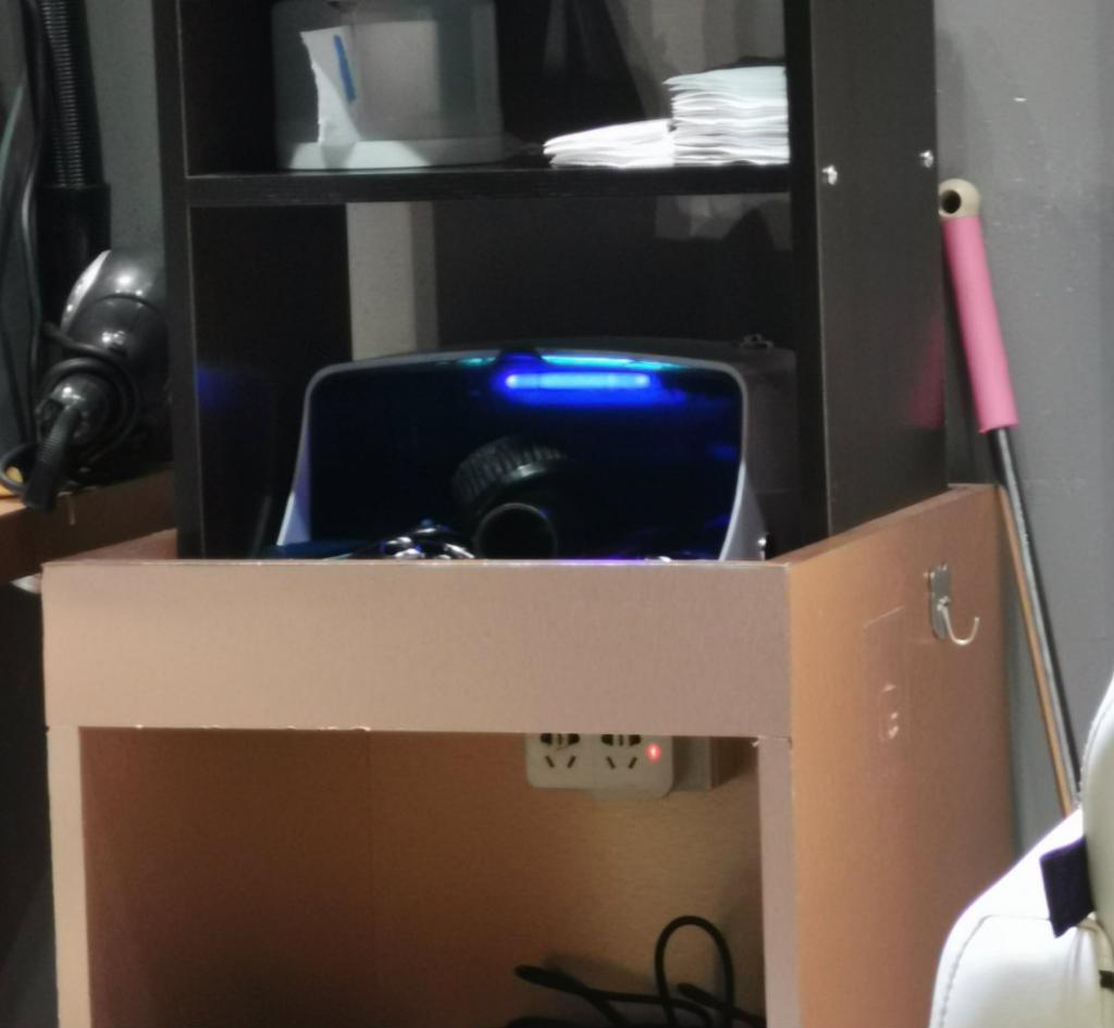 ▲理發(fā)師隨時將工具放于紫外線消毒柜內(nèi)消殺。