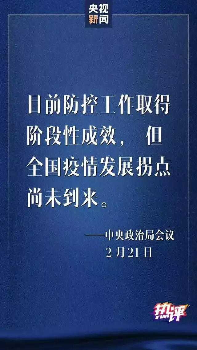 2月21日召開的中央政治局會(huì)議作出冷靜判斷——雖然疫情防控工作取得階段性成效,但“全國(guó)疫情發(fā)展拐點(diǎn)尚未到來”。