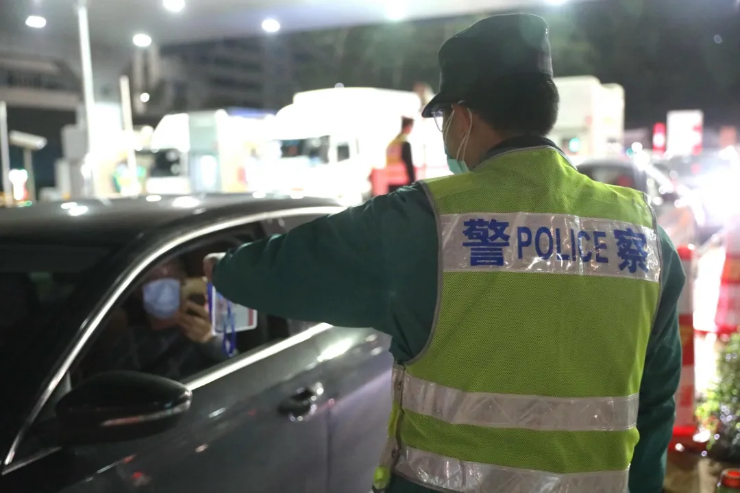 (民警在卡點(diǎn)對(duì)過(guò)往車輛進(jìn)行防疫核查)