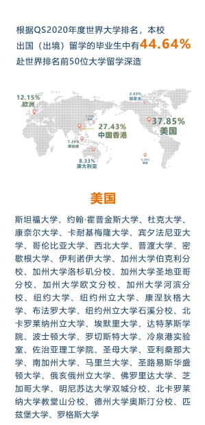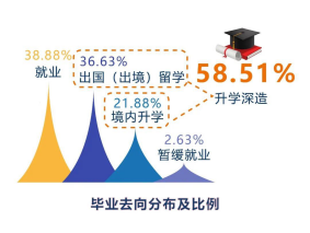 從本科畢業(yè)生升學(xué)情況來看,有超六成同學(xué)選擇了境外留學(xué),其中四成為直博。在2019屆畢業(yè)生里,直博人數(shù)為144人,占全體畢業(yè)生近20%。