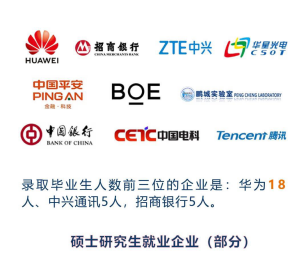 而在碩士研究生的就業(yè)數(shù)據(jù)方面,碩士研究生就業(yè)率達(dá)98.8%,四分之三的同學(xué)選擇了簽約就業(yè)。錄取畢業(yè)生最多的企業(yè)分別是華為、中興、招商銀行,大多數(shù)畢業(yè)生都留在了粵港澳大灣區(qū)。