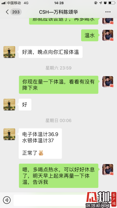 ·西麗社康醫(yī)務(wù)人員協(xié)同物業(yè)管理處,建立居家隔離的溝通微信群,住戶每天上報(bào)體溫,如有異常,安排社康工作人員上門(mén)排查,聯(lián)絡(luò)工作站人員聯(lián)系120轉(zhuǎn)診。
