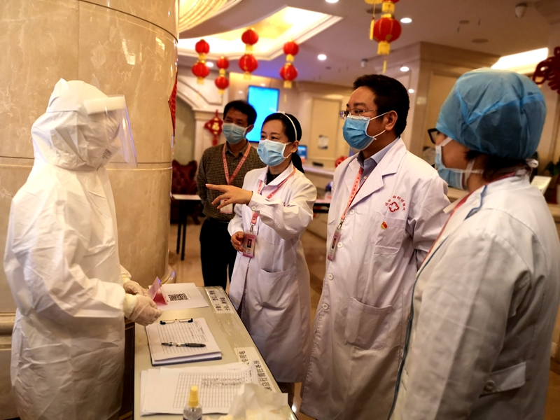 從接到任務(wù)到第一批人員入住,僅有41小時(shí)。接到緊急任務(wù),福田區(qū)婦幼保健院院長(zhǎng)張燁、副院長(zhǎng)李志勇立即召集醫(yī)教科、護(hù)理部、院辦、院感等各部門(mén),開(kāi)始部署工作,聯(lián)合福田街道黨政辦負(fù)責(zé)人王衛(wèi)初到酒店考察,規(guī)劃合理布局、商議物質(zhì)保障渠道。并從樓層分布、工作人員與入住人員的合理分區(qū)、收住流程到消殺內(nèi)容、醫(yī)療垃圾的定點(diǎn)位置、大批量觀察人員的就餐問(wèn)題等都一一落實(shí)解決。
