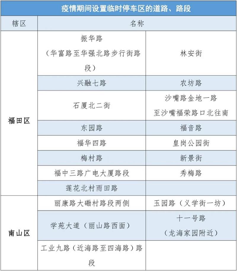 此外,根據(jù)市民反映的信息,深圳交警進(jìn)行實地走訪、勘查,決定再增設(shè)20條路段作為疫情期間臨時停車區(qū)。截至2020年3月3日,深圳交警共在全市171條路段做為疫情期間道路臨時停車區(qū),具體設(shè)置路段如下: