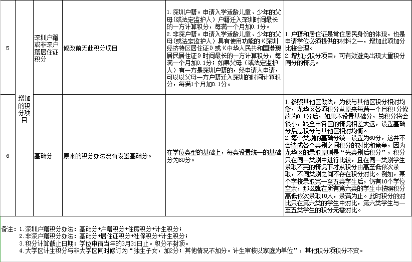 劃重點(diǎn):政策內(nèi)或全面二孩擬不再加分,獨(dú)生子女加2分;深圳戶籍自購商品房產(chǎn)擬改為以房產(chǎn)購買日期計算積分;非深戶籍?dāng)M按照養(yǎng)老保險和醫(yī)療保險兩種險種同時繳納的時間計算積分;新增深圳戶籍或非深戶籍居住證積分;新增基礎(chǔ)分60分。