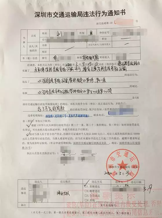 最終該貨車被暫扣,駕駛員劉某林,因運輸危險貨物被予以3萬元的處罰。