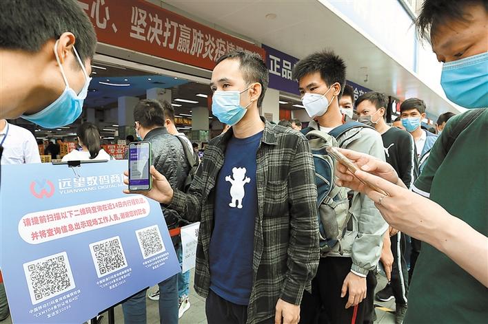 為方便市場了解人員去向,華強北街道指導(dǎo)市場管理方利用運營商推送服務(wù),引導(dǎo)商戶通過掃描相應(yīng)的運營商二維碼,獲取人員過去14天去向,做到入場人員信息“一掃清”。根據(jù)有關(guān)通知,商戶準(zhǔn)備好自己的健康檔案、i深圳、“一掃清”等信息,經(jīng)現(xiàn)場測溫正常,若是從外地返深人員,按要求進(jìn)行居家隔離后,才能順利取得市場商戶通行證。通行證需要配合身份證使用,確保一人一證。另外,華強北街道還通過升級通風(fēng)系統(tǒng)等方式加大了室內(nèi)空氣流動量。(深圳商報記者 余海波 攝影報道)