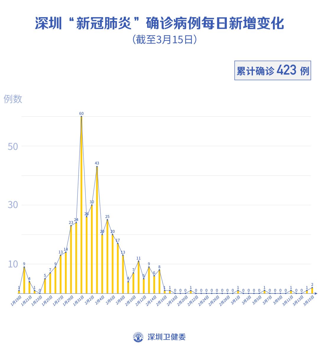 截至3月15日24時,深圳累計報告“新冠肺炎”確診病例423例。3月15日當(dāng)天新增2例,出院2例。