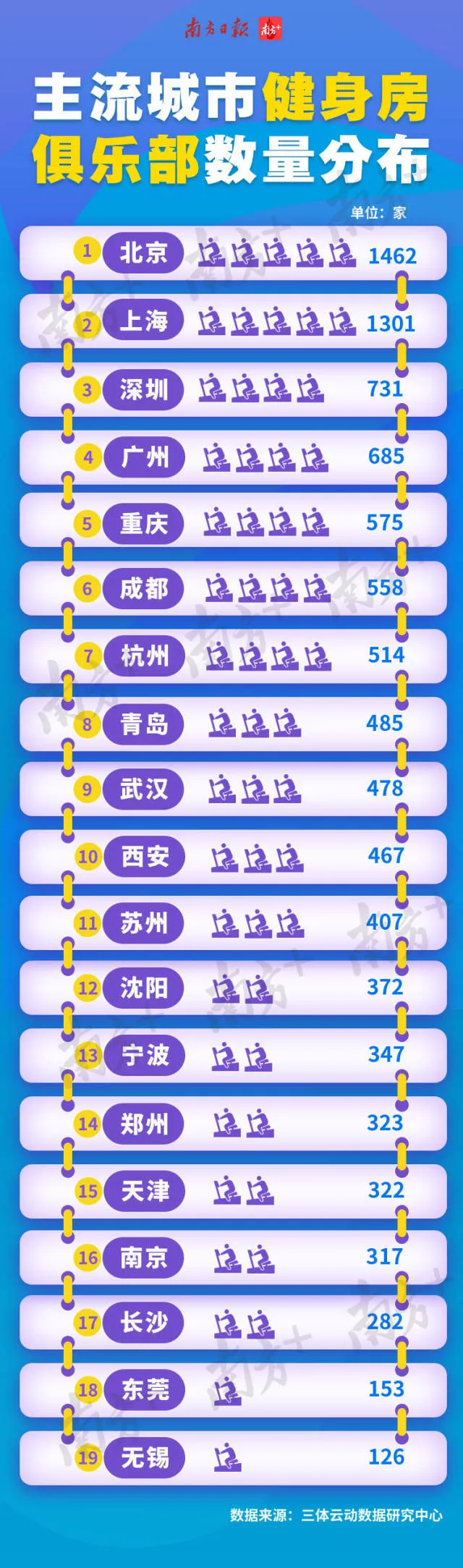 我國哪些城市健身房供應(yīng)最充足、不用排隊呢?