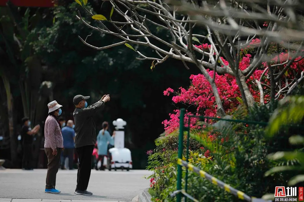 市民們紛紛拿起手上的長槍短炮,以深圳藍(lán)為背景,記錄下春日美景。