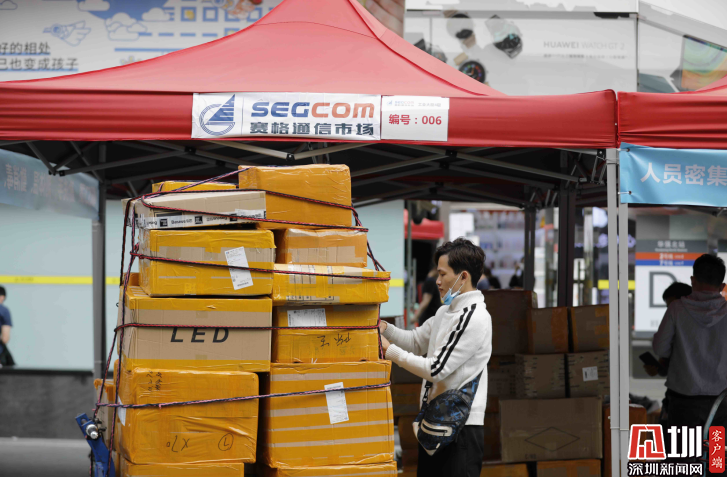 華強(qiáng)北步行街上的非接觸物流快遞區(qū)。