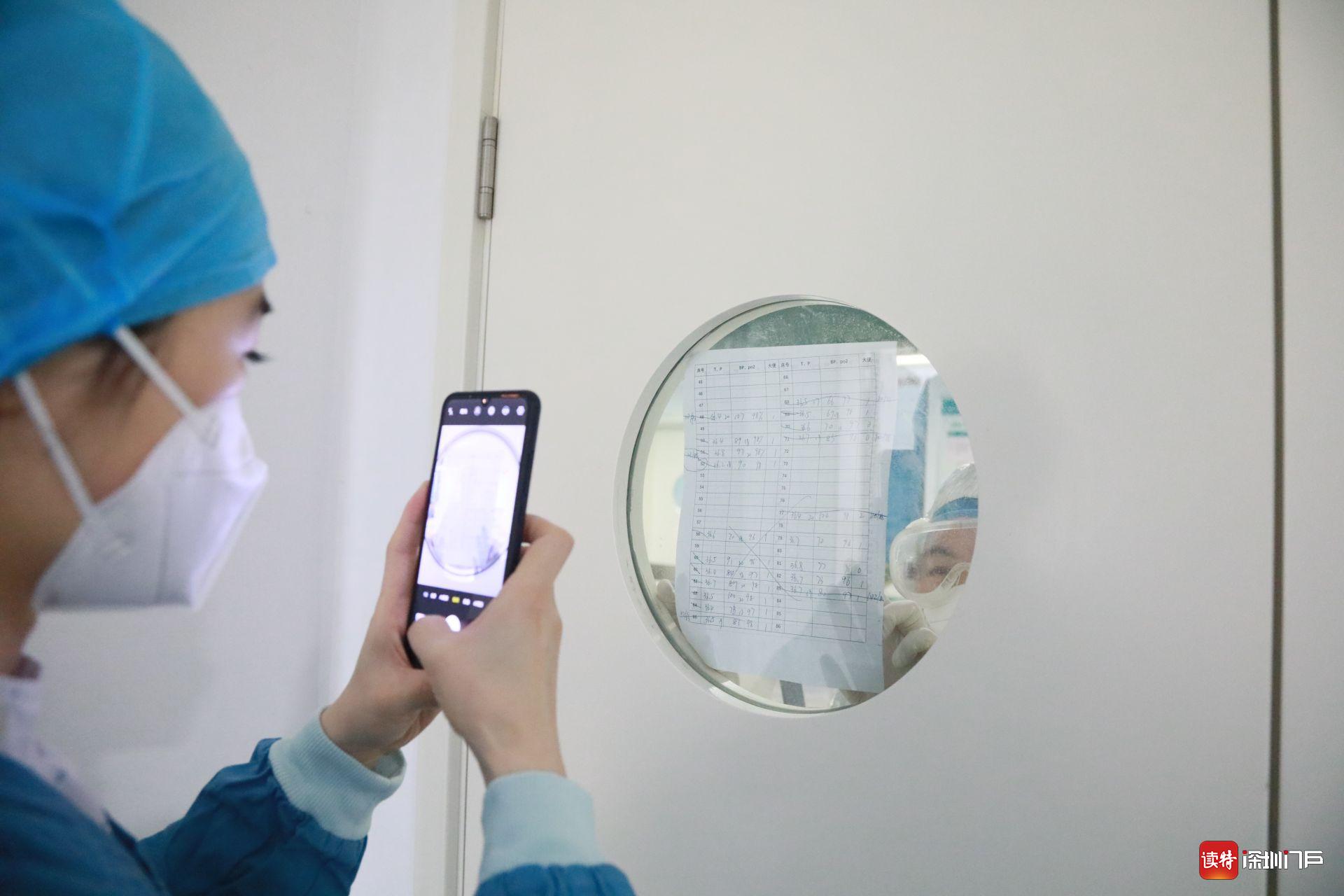 2月21日,監(jiān)利縣人民醫(yī)院指揮中心,廣東省醫(yī)療隊前指領(lǐng)導與縣中醫(yī)院ICU里的廣東醫(yī)療隊隊員進行視頻連線。