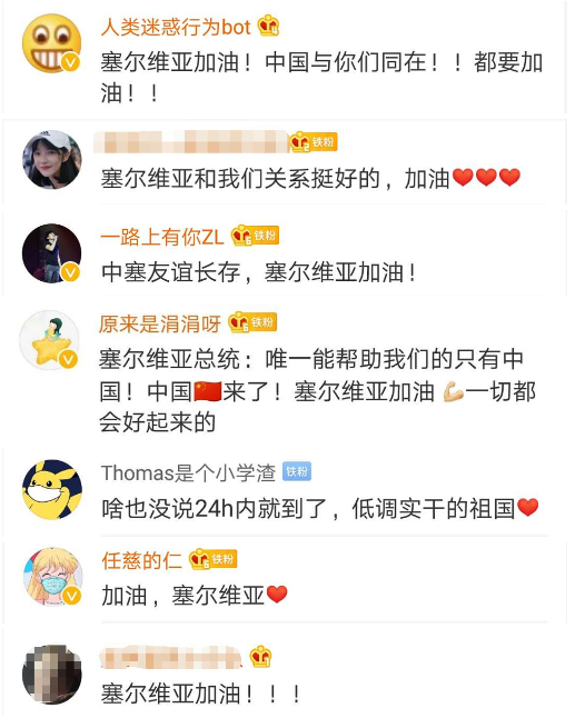 中國網(wǎng)友紛紛替塞爾維亞加油。