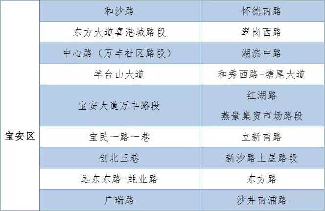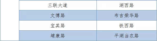 具體設(shè)置路段請看表格