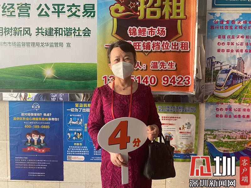 福田區(qū)人大代表劉霞為農(nóng)貿(mào)市場(chǎng)打分。(滿分為5分)